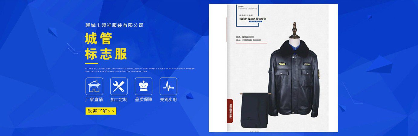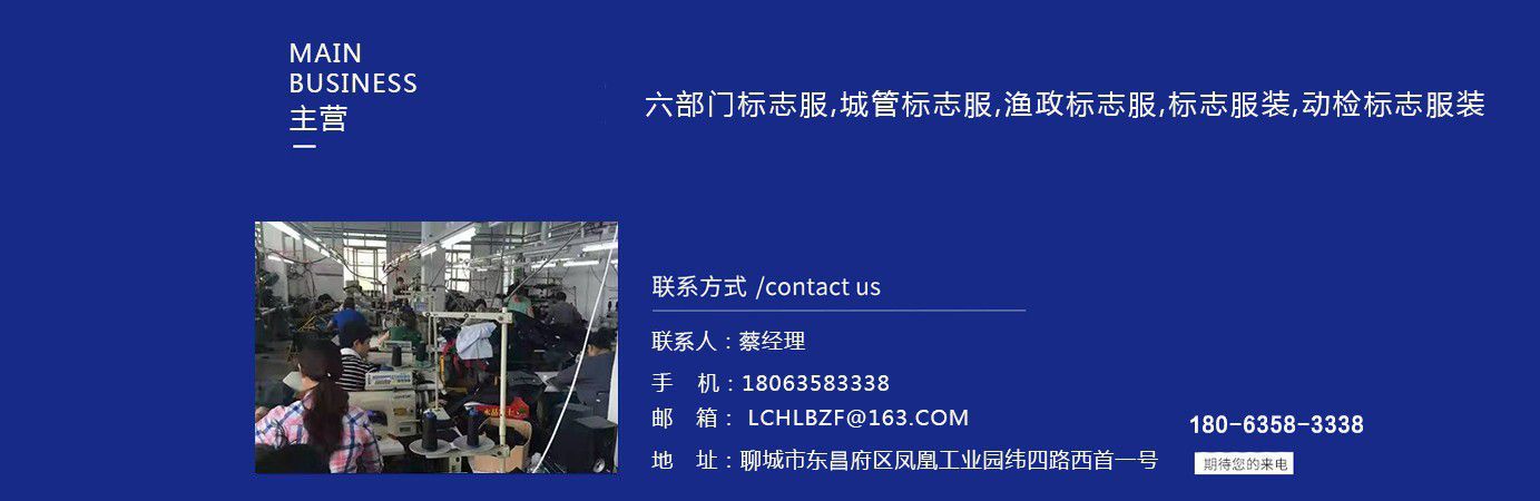聊城市領祥服裝有限公司主主要生產六部門標志服,城管標志服,漁政標志服,標志服裝,動檢標志服裝,標志服裝廠等產品,款式新穎,做工精細,可根據用戶要求批量定做。公司成立以來,已為各行業數千家企業、集團承制了職業制服。 多年來,我公司本著“質優高效,守約重譽”的經營理念給廣大新老客戶提供質優價廉的產品和售后服務。憑借良好的信譽,雄厚的實力,優質的產品,低廉的價格愿與新老客戶真誠協作,業務遍布全國各地,是山東優秀的標志服裝廠,歡迎新老客戶參觀考察! 公司生產的職業服飾均以標準的質量,頂尖精湛的技術為基礎,以客戶的滿意為根本,全程采用電腦輔助設計制服,成衣、服飾配件(領帶,領結,紐扣,帽子,企業標志等)均可定織定染,普遍采用進口或合資優質輔料,尺碼按身高和體型劃分或量體定制。每一道工序,每一個生產環節精雕細琢,充分體現了以質量求生存,以信譽求發展的理念。并以準確的市場定位,先進的營銷理念,贏得廣大客戶的信賴支持! 公司宗旨:“團結、服務、創新”。公司方針:“專業創造輝煌,質量保證未來,用心換得人心”。熱誠歡迎業界同仁來公司洽談!...
